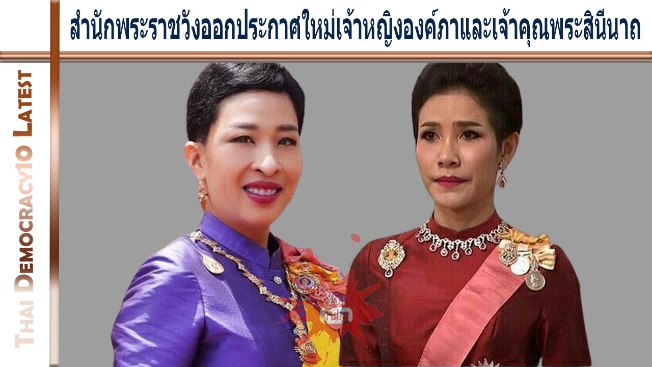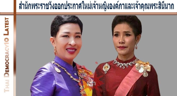 สำนักพระราชวังออกประกาศใหม่เจ้าหญิงองค์ภาและเจ้าคุณพระสินีนาถ